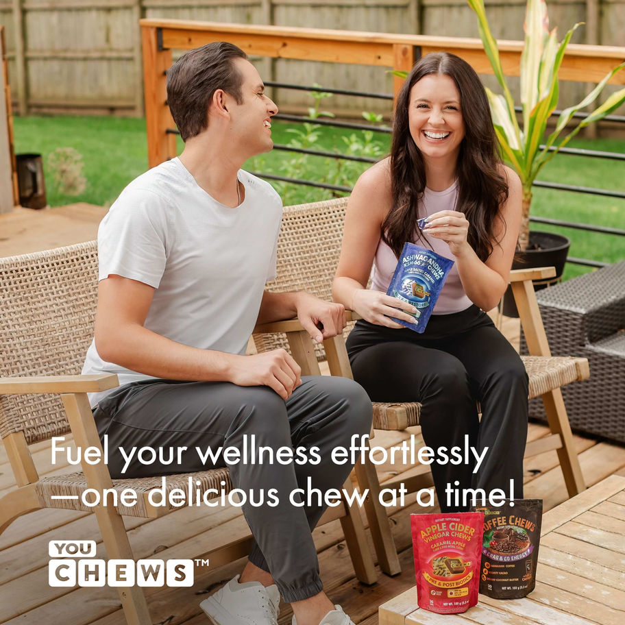 More Potent, Less Sugar, No Sticky Mess YouChews Ashwagandha chews deliver a higher dose per serving than most ashwagandha gummies, with less sugar and no clumping or melting—just clean, effective stress support anytime.